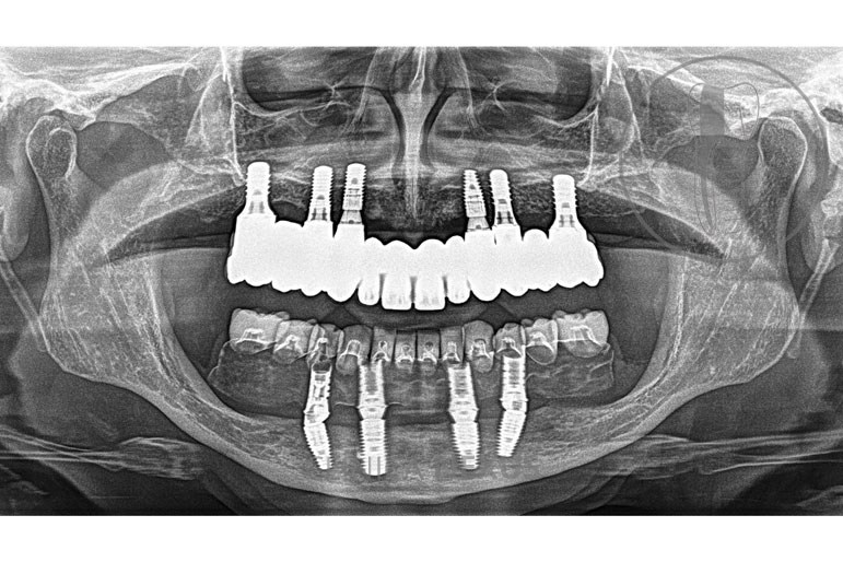 Rehabilitación bimaxilar fija implanto-soportada mediante un enfoque novedoso que se argumenta bajo el uso de nuevos materiales restauradores. Se trata de un paciente que era portador de una rehabilitación sobre implantes previa fracasada.  Si desea conocer en detalle las características del caso clínico puede acceder al artículo que publicamos al respecto en el Journal Prosthetic Dentistry